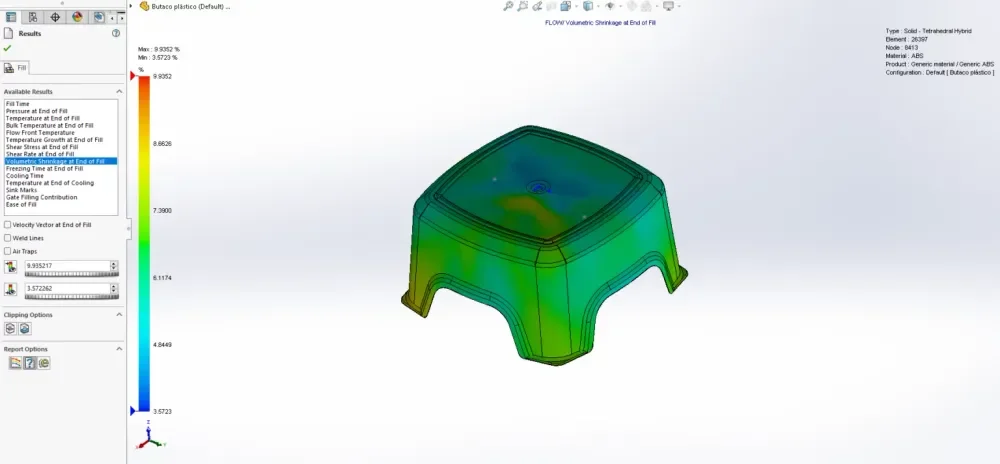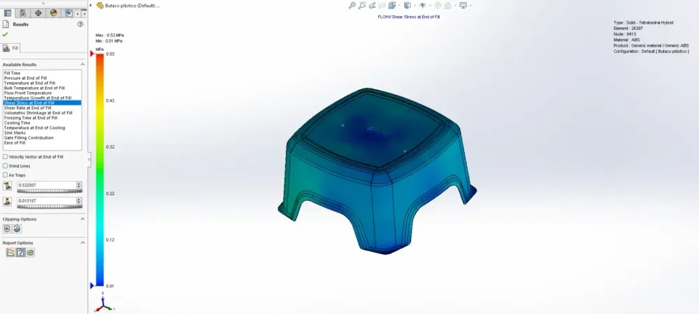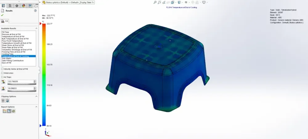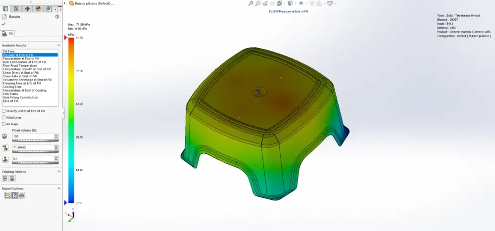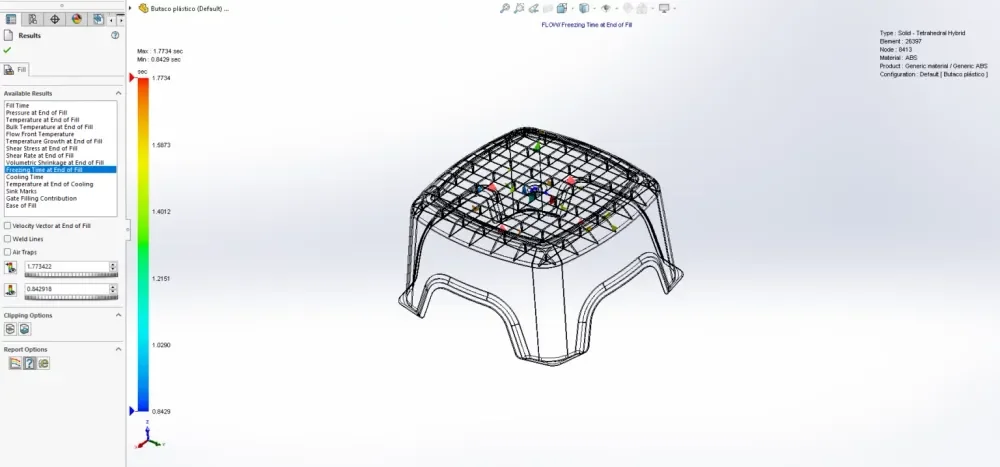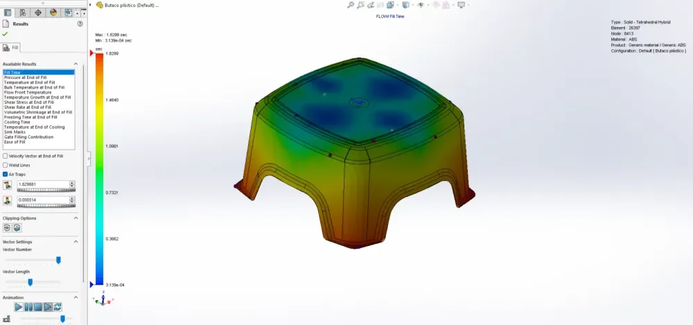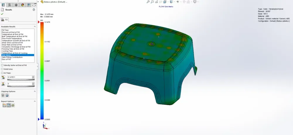 In our product development stage, we prioritise analysing plastic parts to minimise manufacturing errors by 95% during the design phase, resulting in the production of cost-effective and high-quality parts. The following provides an explanation of the process and terminology involved in this analysis. To illustrate, we analysed a standard stool model made of ABS material using SolidWorks Plastic Simulation.